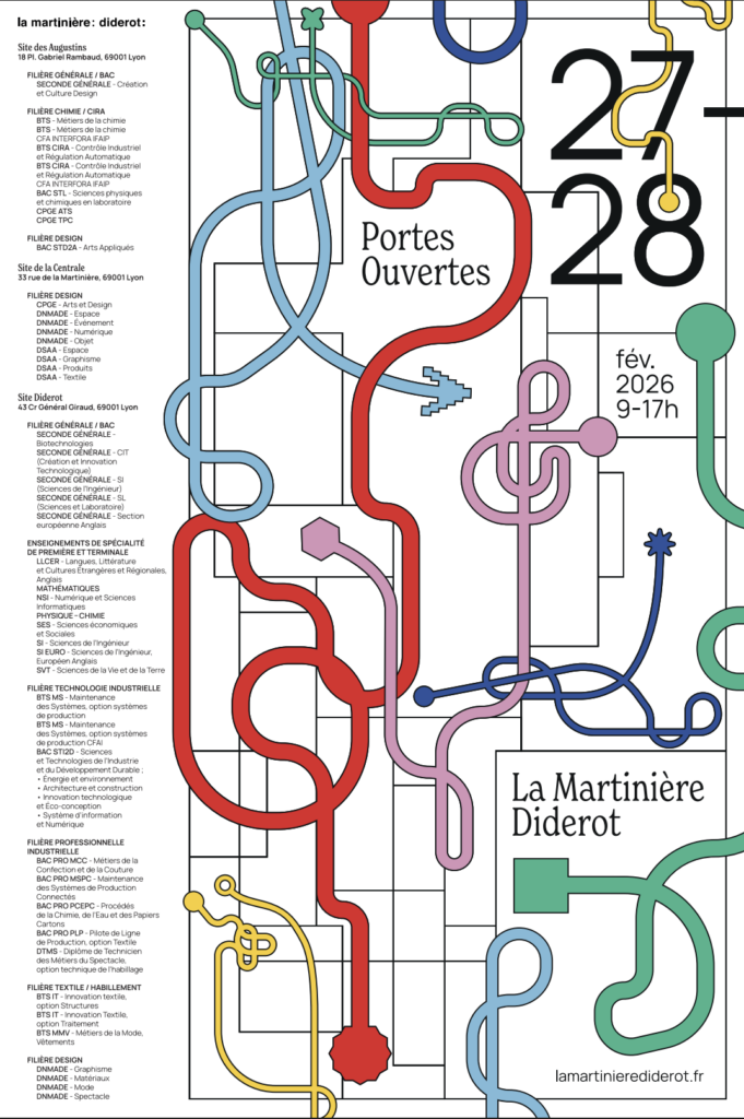Création d’une communication multisupport sur les journées portes ouvertes du lycée et de l’ÉSAA La Martinière-Diderot. Le travail se fait en groupe de 5 personnes.